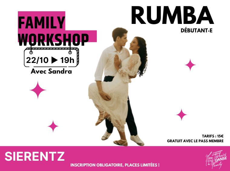 Les Family Workshop sont l’occasion idéale d’apprendre, de progresser et de vivre ta passion pour la danse dans une ambiance conviviale, bienveillante et passionnée.