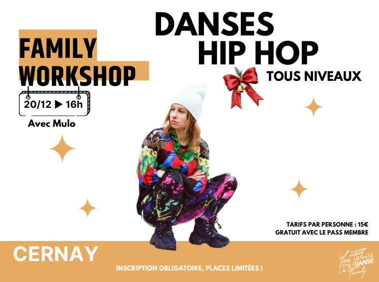 Ce Family Workshop tous niveaux te propose une découverte fun et accessible des différents styles hip hop, dans une ambiance chaleureuse, rythmée… et un peu magique !