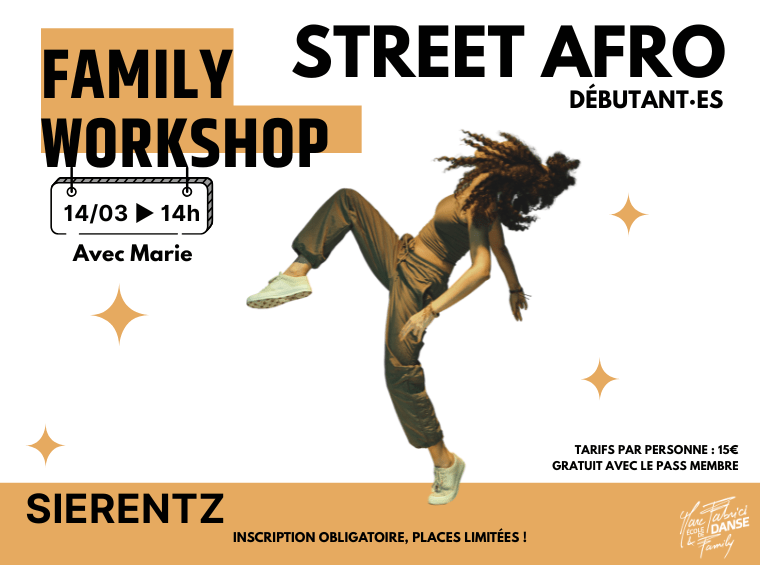 Accueil › Événements › Family Workshop – Street Afro (Débutant) à SierentzFamily Workshop – Street Afro (Débutant) à Sierentz
