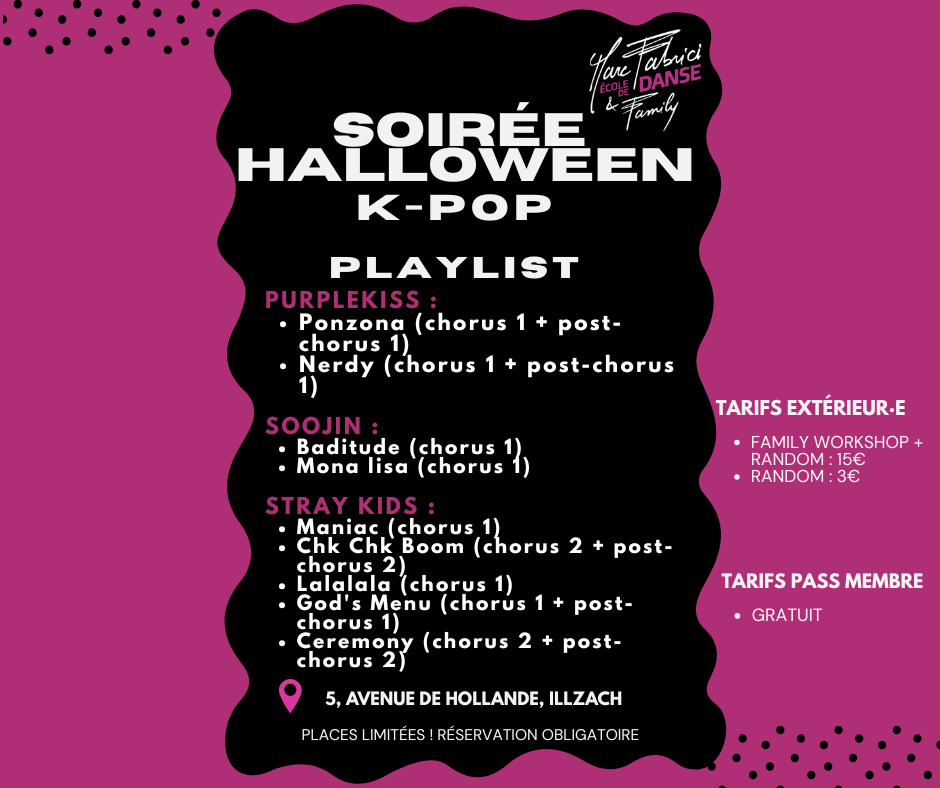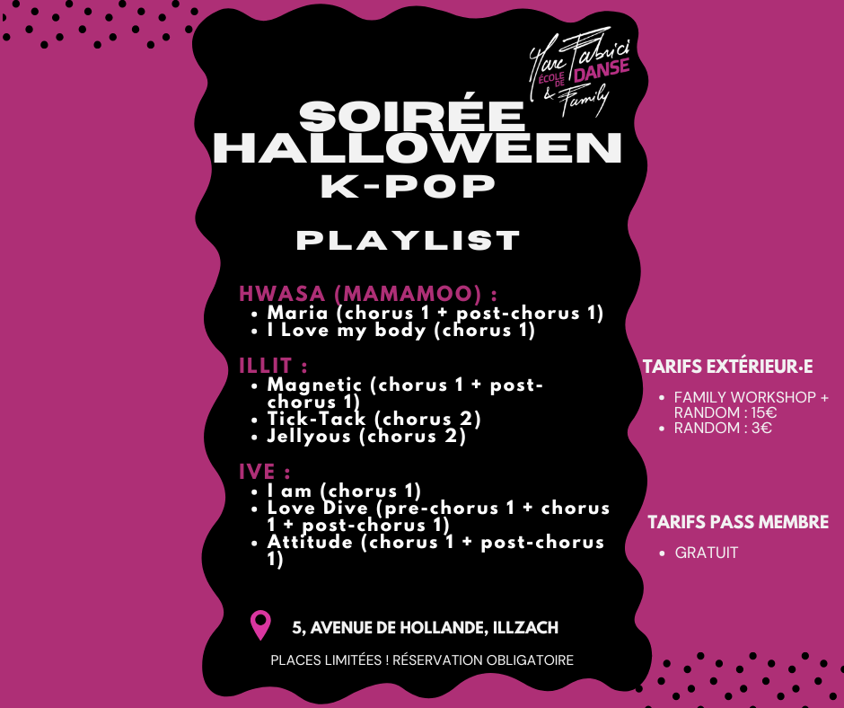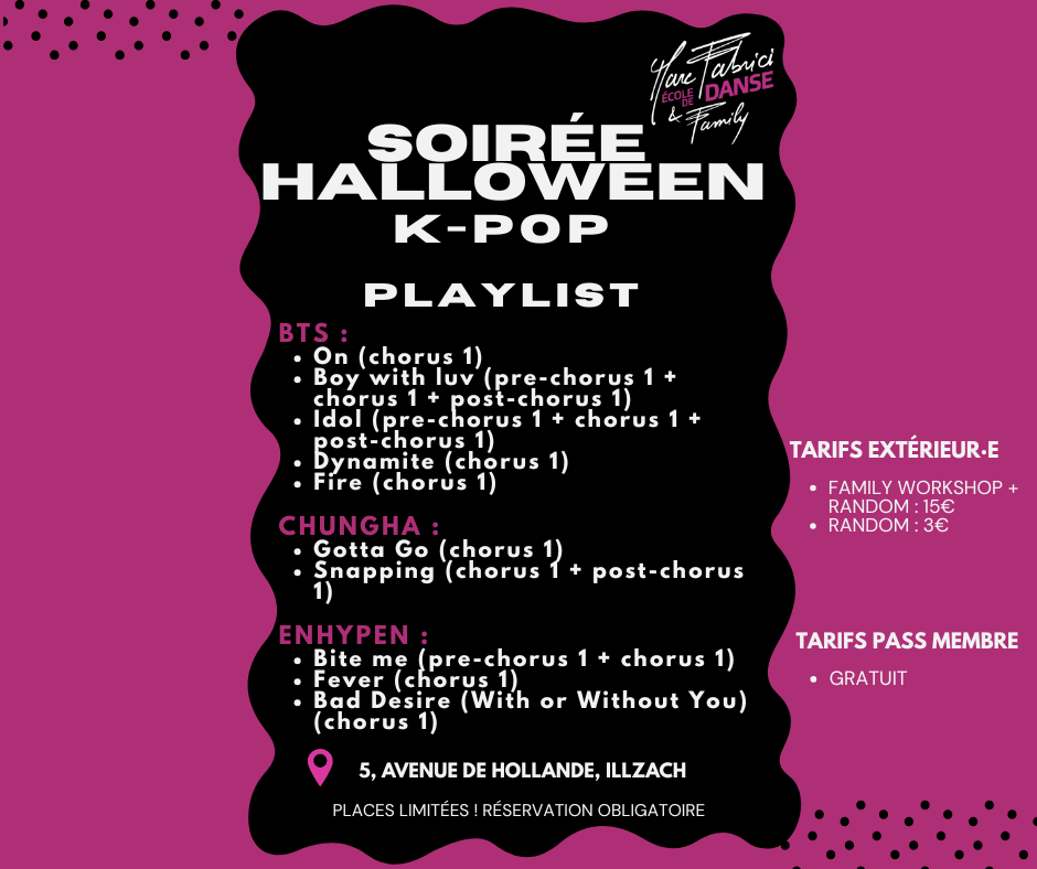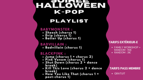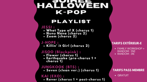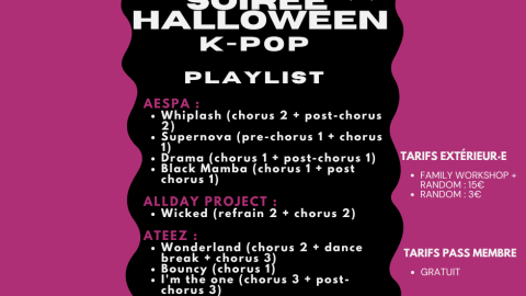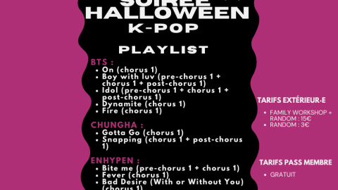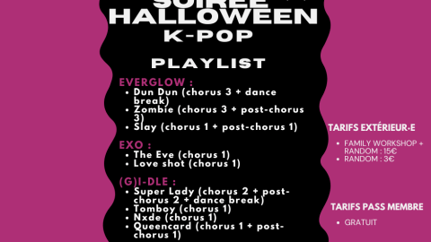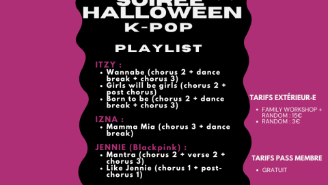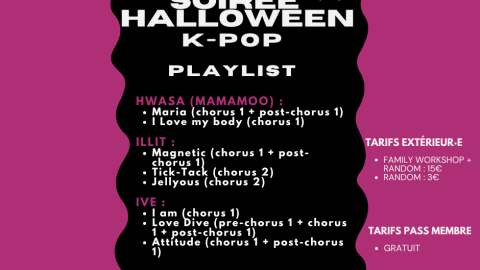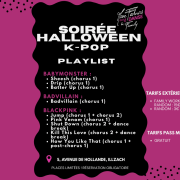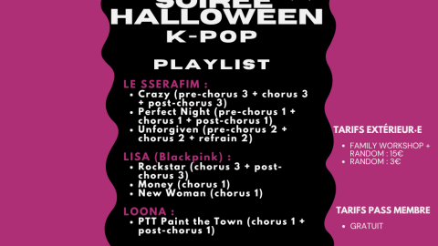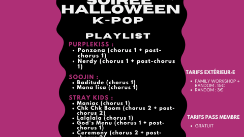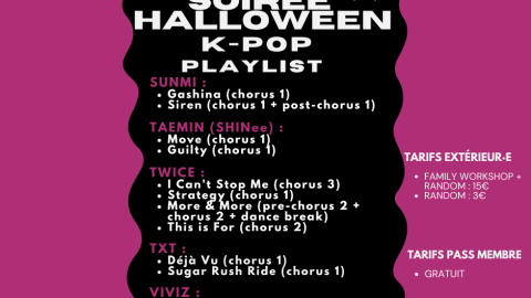 Cette année, prépare-toi pour une soirée Halloween 100 % K-Pop, fun et festive, dans une ambiance conviviale et pleine d’énergie 💜 !
