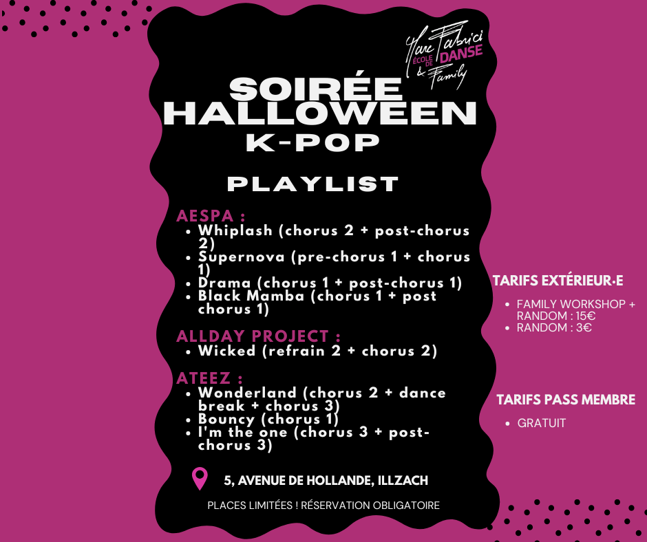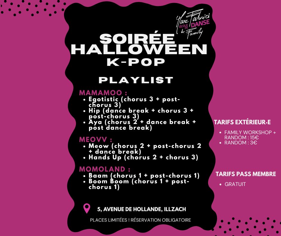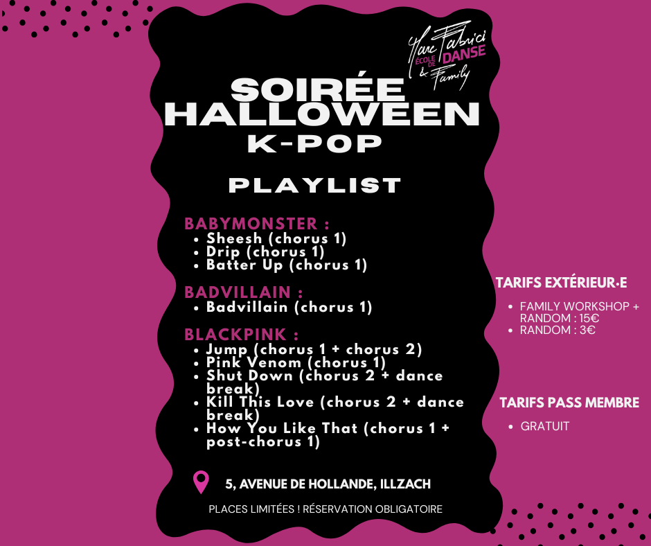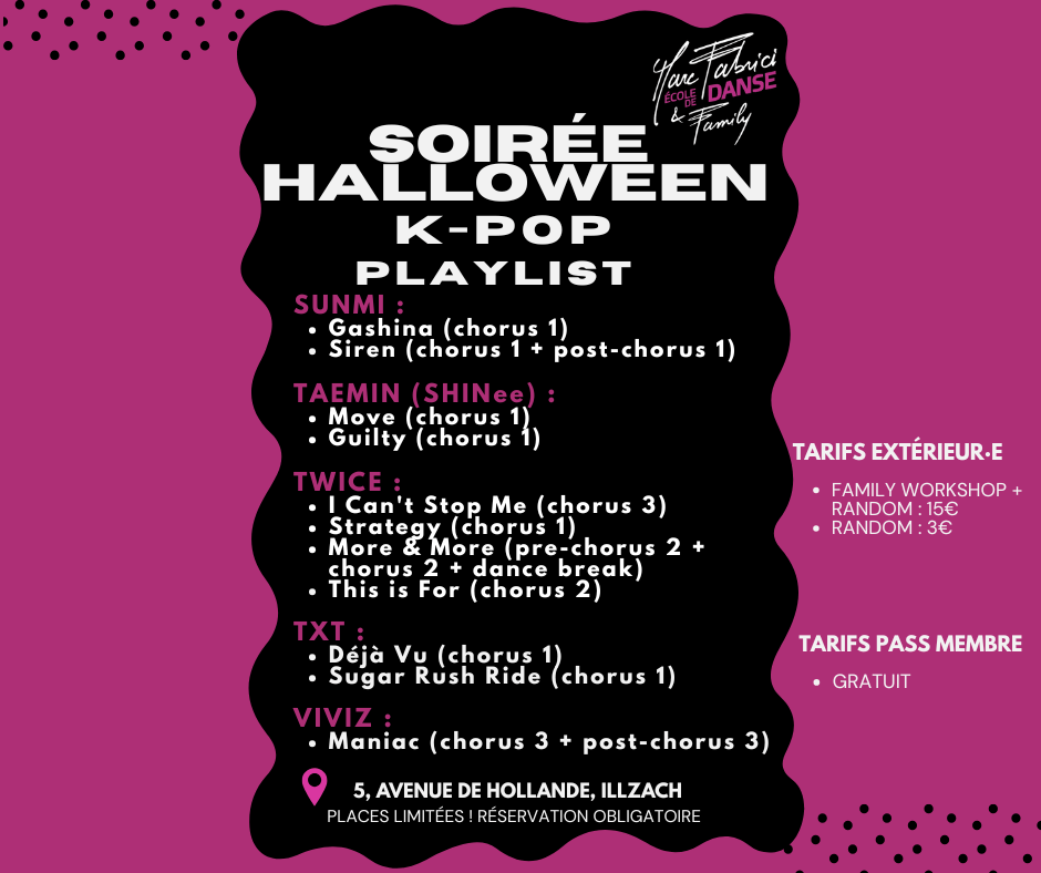 Cette année, prépare-toi pour une soirée Halloween 100 % K-Pop, fun et festive, dans une ambiance conviviale et pleine d’énergie 💜 !